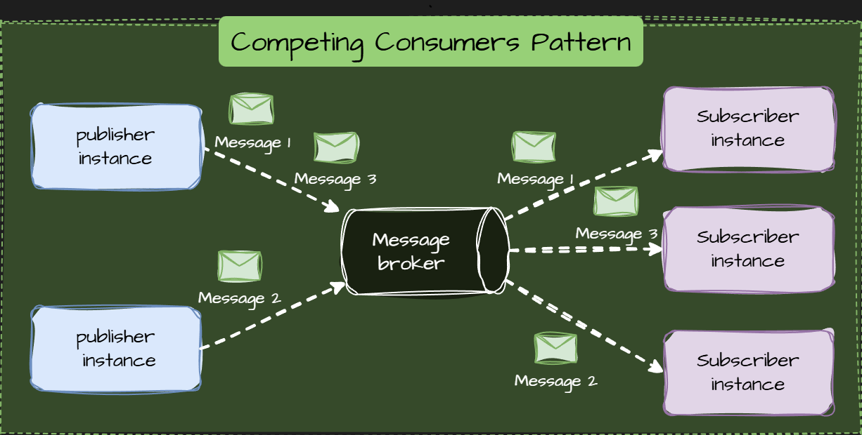 Цель шаблона разрешить нескольким параллельным консюмерам обрабатывать сообщения, полученные по тому же каналу обмена сообщениями. Этот шаблон позволяет системе обрабатывать несколько сообщений одновременно, чтобы оптимизировать пропускную способность, улучшить масштабируемость и доступность, а также сбалансировать нагрузку.