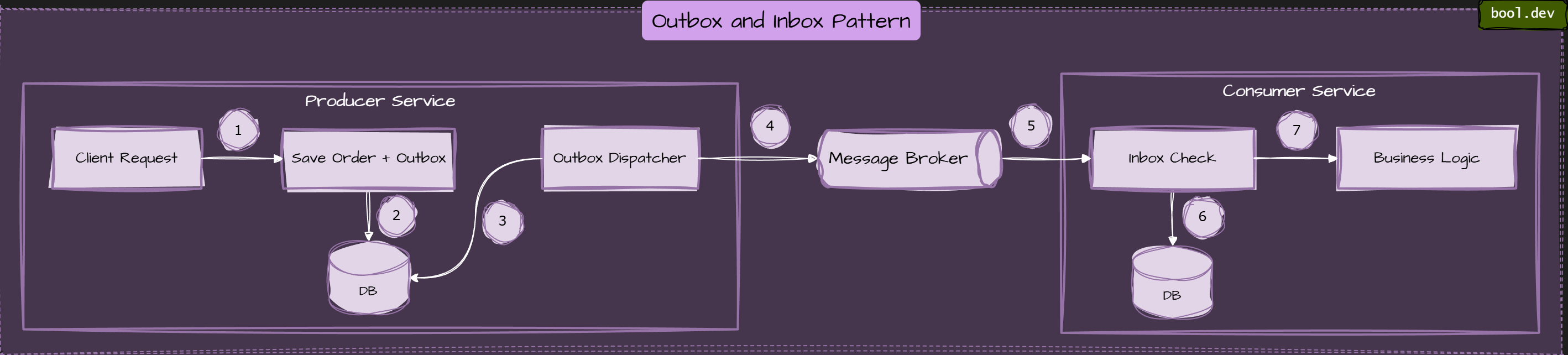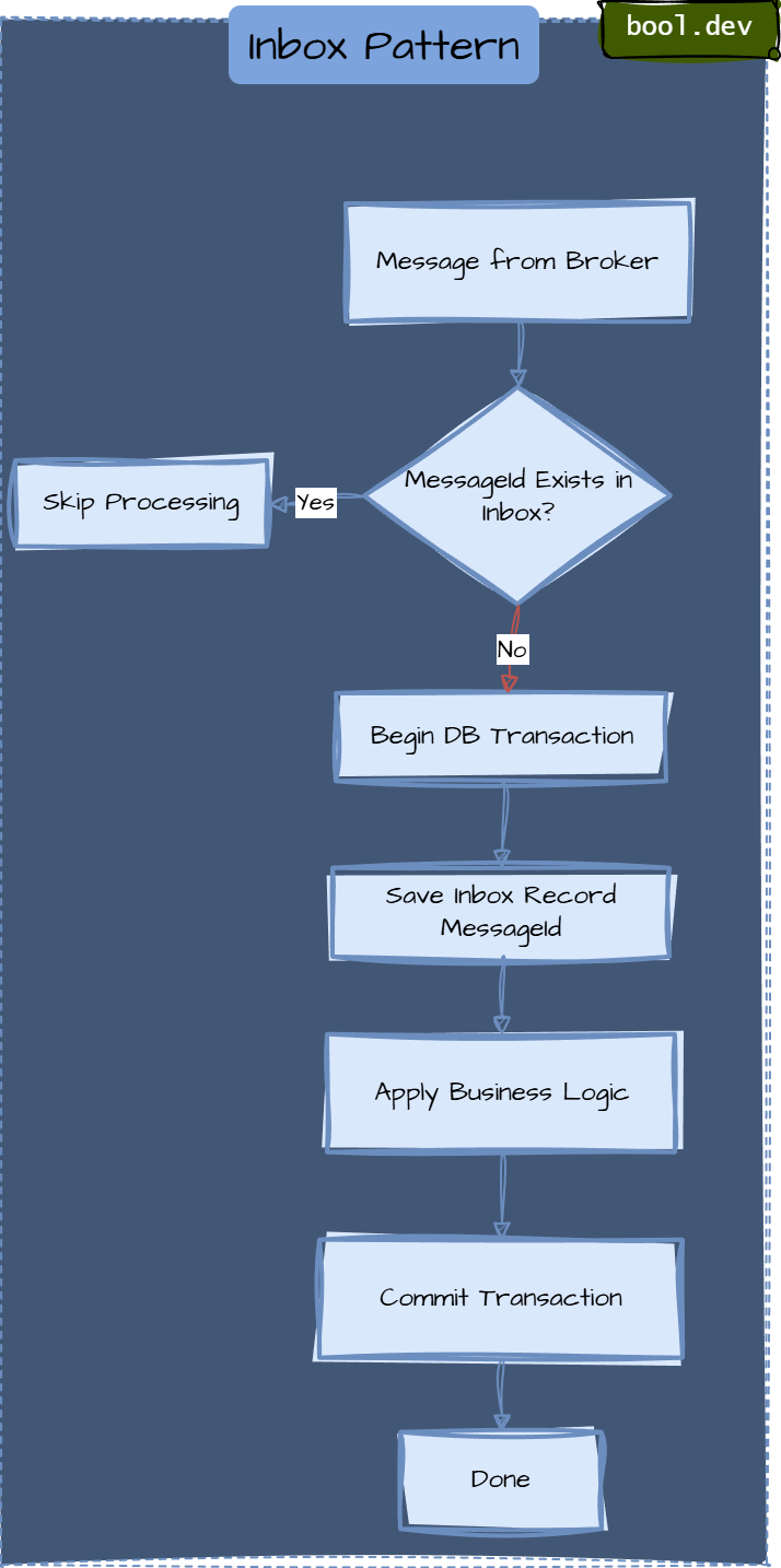 - Inbox: Ensures incoming messages are processed exactly once, even if they arrive repeatedly.